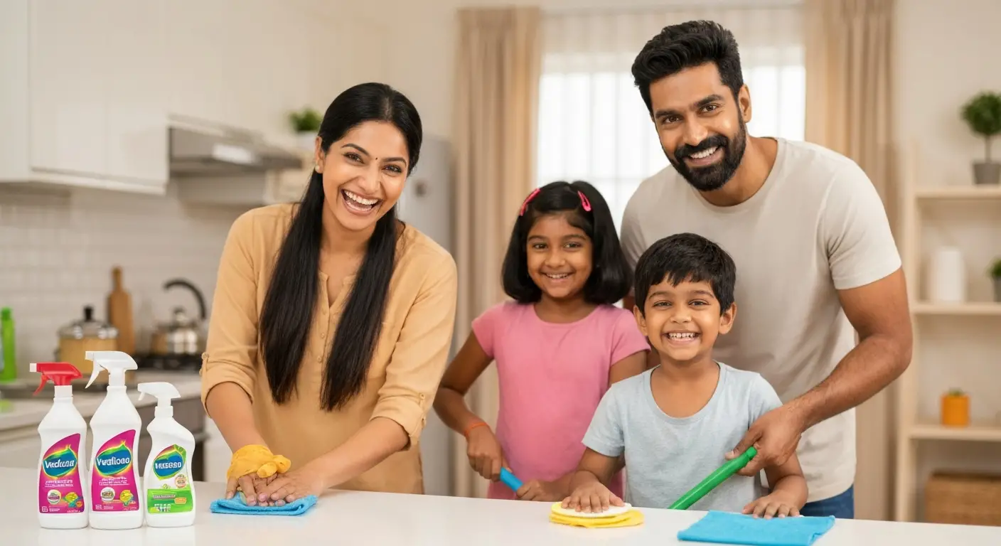 Discover visuals of authentic moments and environments showcasing Vedacare Industries' household cleaning essentials in everyday Indian homes.
